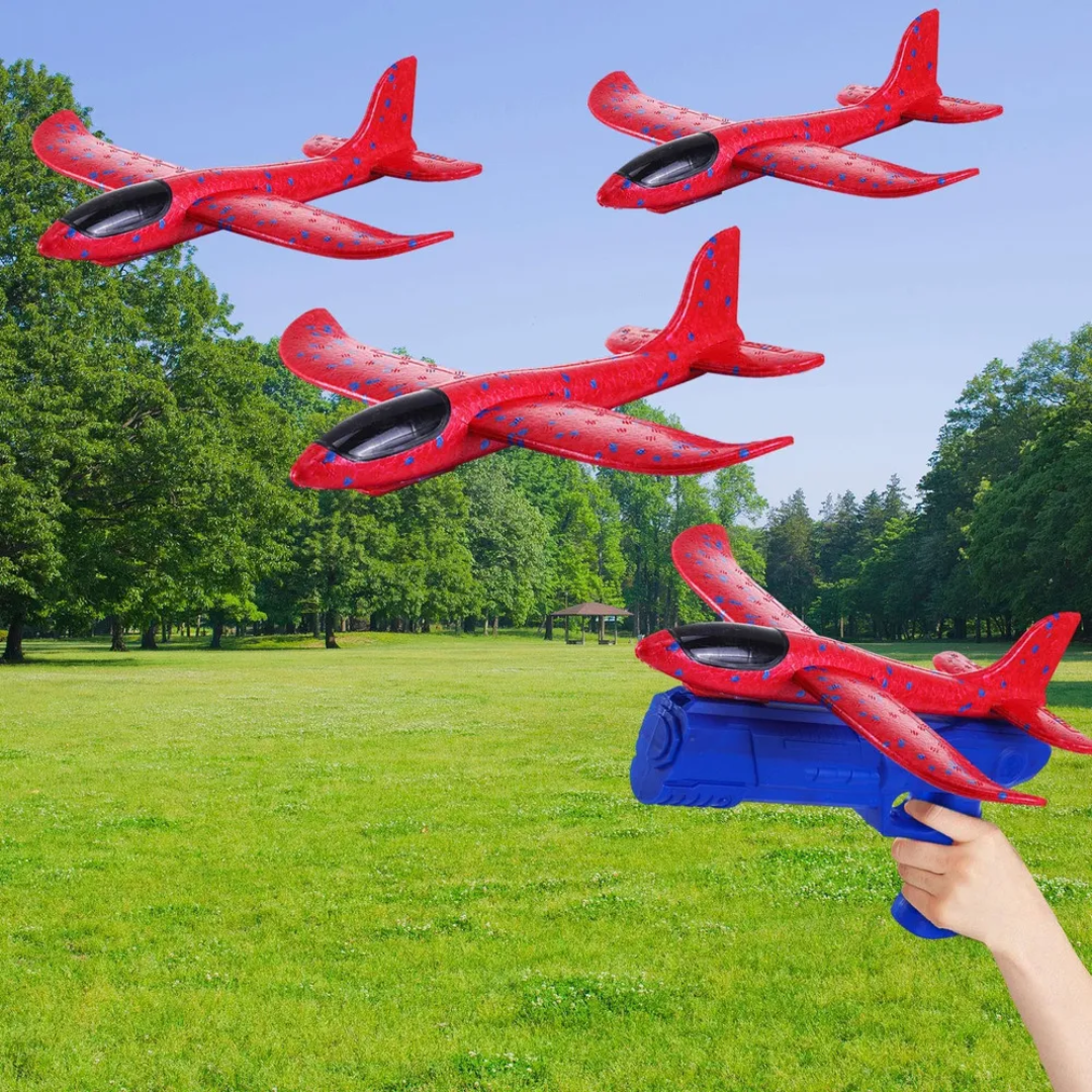 Este set de aviones de espuma con lanzador tipo pistola es el compañero ideal para aventuras al aire libre. Gracias a su diseño aerodinámico y a la fuerza del gatillo, los aviones pueden volar hasta 15-20 metros con solo una presión.